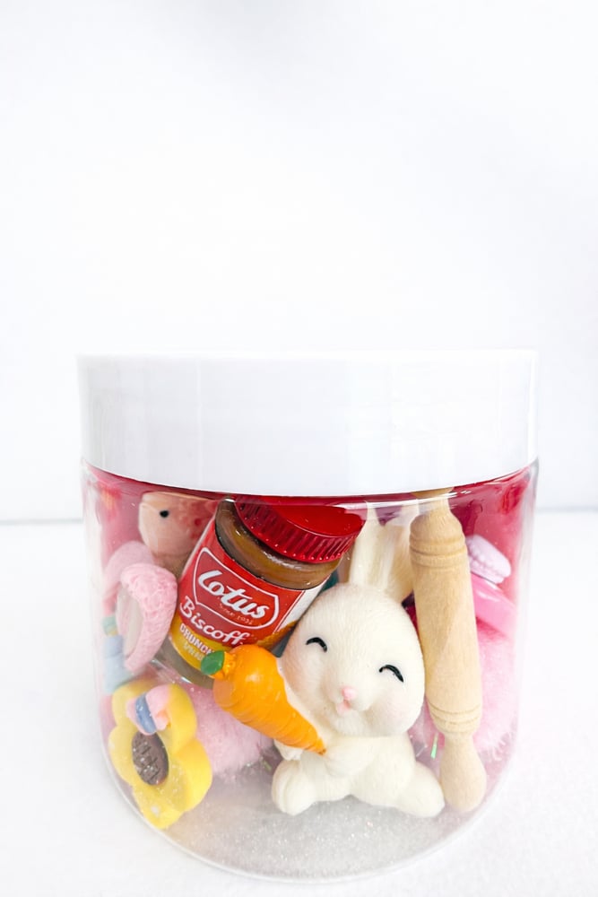 Celebrate Easter-themed Play Dough jar, filled with the sweetest little accessories and miniature dessert details! Perfect for sensory play, gifting, Easter egg hunt , this jar is packed with charm and creativity.