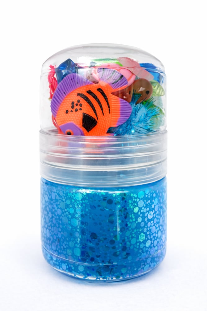 Dive into a magical underwater world! This ocean-themed jar is filled with soft blue play dough, along with fish, starfish, and other sea creatures to explore, create, and imagine. Perfect for little hands and big adventures beneath the waves.